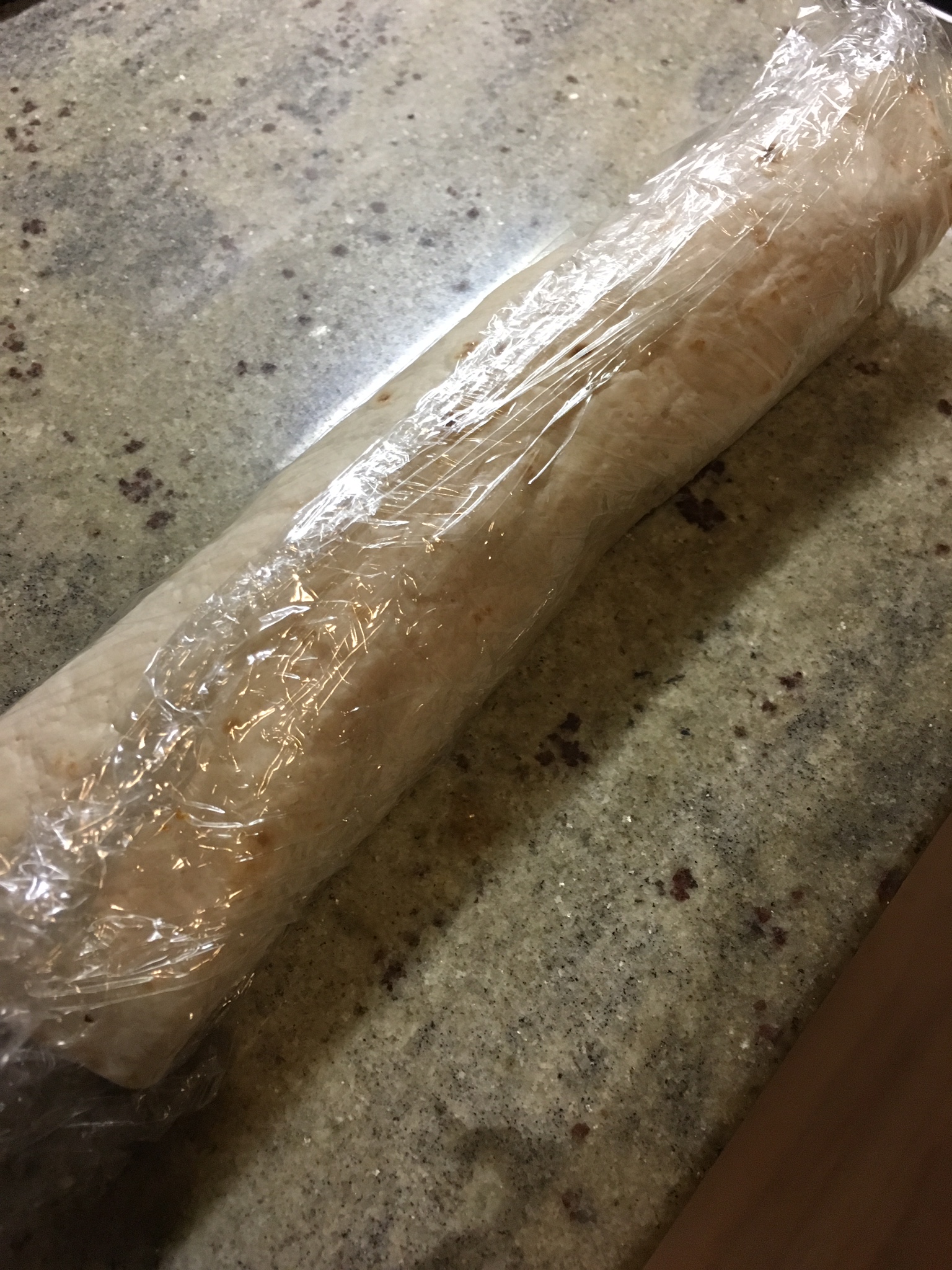 Rol de wrap strak op, wikkel ‘m in vershoudfolie en laat minimaal 2 uur opstijven in de koelkast.