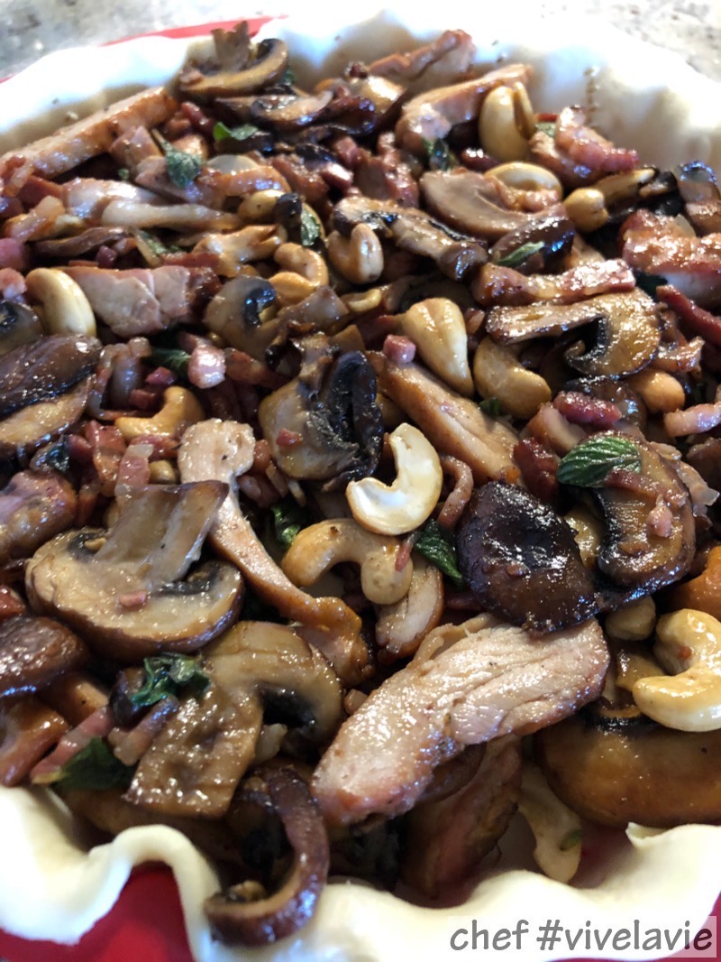 Ik ben wel een liefhebber van de hartige kruidigheid die bijvoorbeeld Boursin heeft en nee: dit recept wordt niet gesponsord door Boursin. Ik kook vaker met Boursin, omdat ik het een geweldige smaakmaker vind en daardoor lekker combineert met een aantal mooi ingrediëntn, zoals champignons en spekjes. Voeg daar nog iets aan toe met een bite (cashewnoten in dit geval) en je hebt de heerlijke inhoud van een hartige taart.