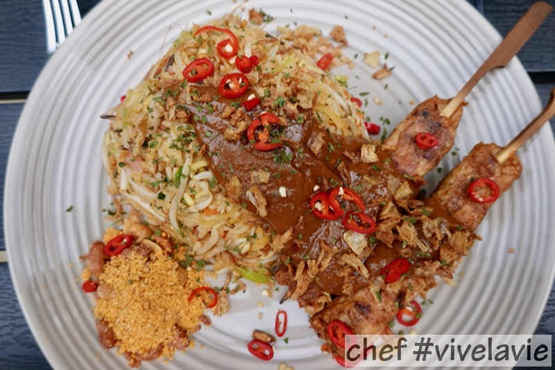 - Serveersuggestie: leg in een bamboe schuitje 2 spiezen, doe daar een lepel saus over en garneer met lente ui.